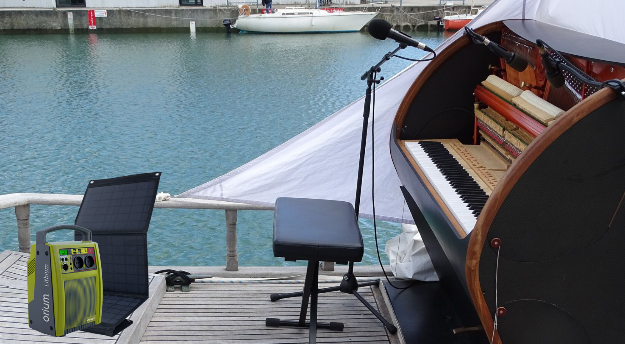 « Je viens d’acheter une batterie Orium IZYWATT 288Wh avec son panneau solaire 50 W. Je dois dire que j’en suis ravi ! La raison initiale de cet achat était pour pouvoir travailler mon piano électronique en étant en navigation* pendant mes vacances sur un trimaran! En tant que pianiste professionnel, quel privilège de pouvoir travailler mon piano en mer, voire jouer du Jean-Sébastien Bach le soir sur la plage d’une île dans le golfe de Morbihan ! Avec la prise 220 volts rien n’est plus facile ni plus commode.