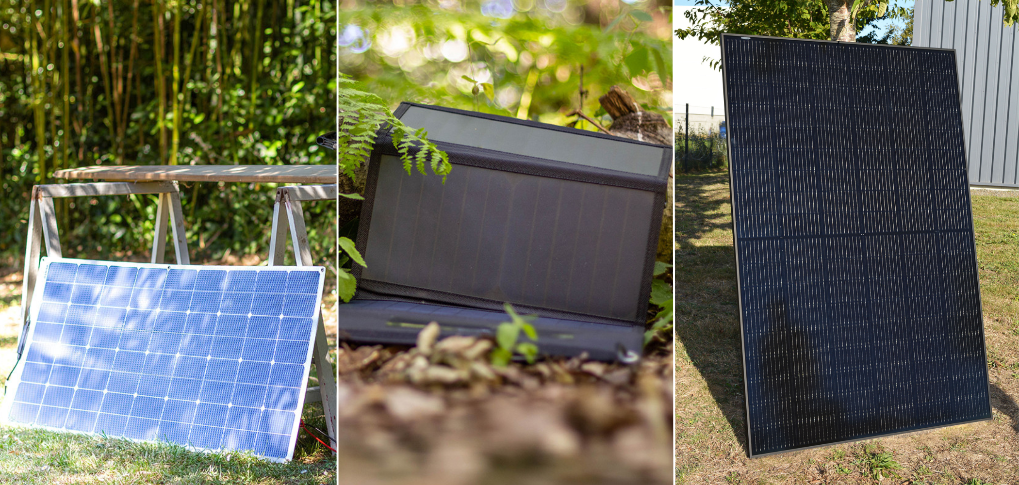 Les panneaux solaires pliables se distinguent par leur flexibilité et leur portabilité. Conçus avec des matériaux légers, ils peuvent être pliés voir enroulés, facilitant le transport et le stockage. Techniquement, ils offrent une efficacité similaire aux panneaux rigides et sont à peine plus grands à puissance égale.