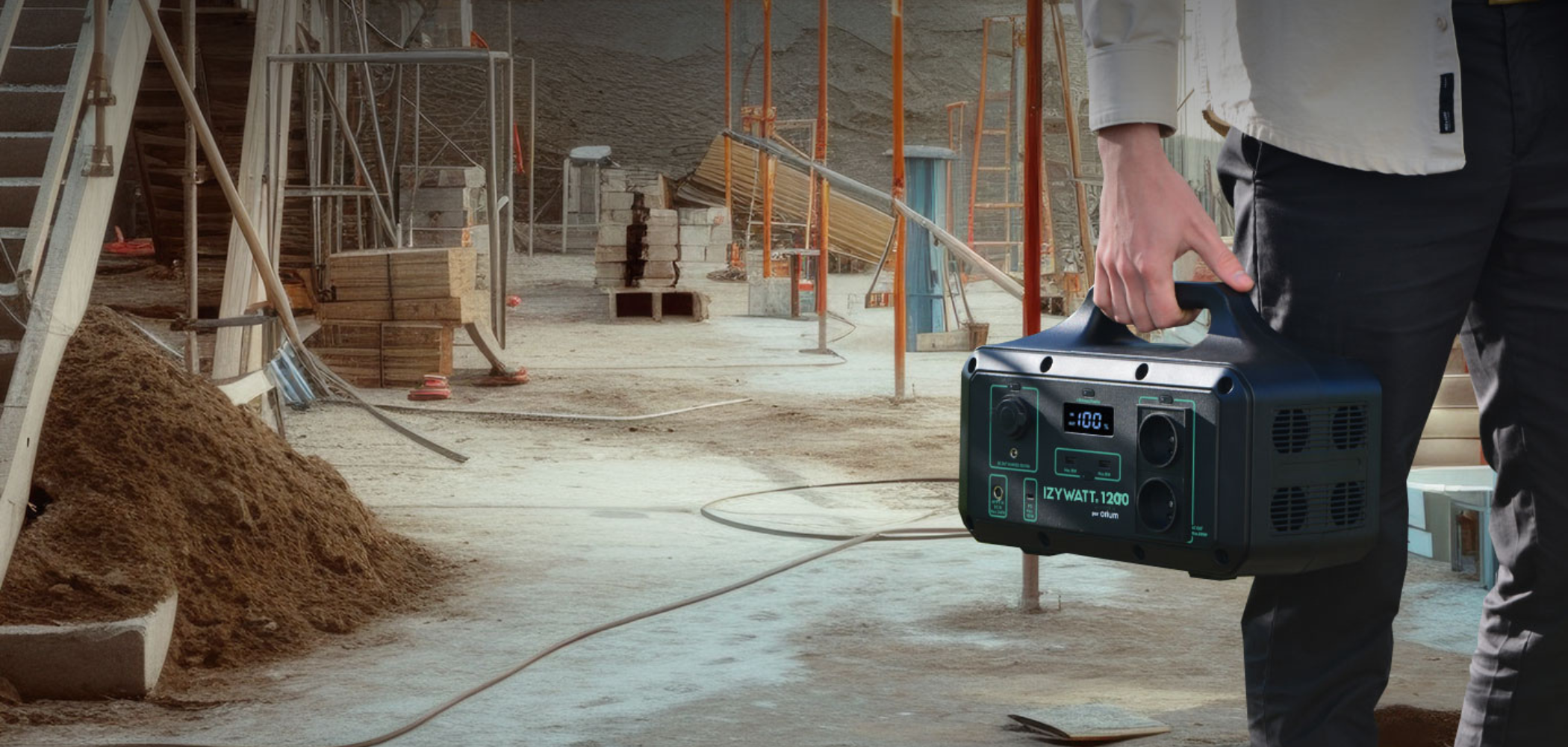 En plus des avantages en termes de types de solutions d’énergie solaire et de choix de montage, les produits de la gamme IZYWATT d’Orium offrent une solution exceptionnelle pour les chantiers de construction grâce à leur facilité d’installation et à leur portabilité. Les divers modèles, tels que l’IZYWATT 150, à 2400 varient en capacité et en fonctionnalités, répondant à une large gamme de besoins énergétiques sur le terrain. Ces unités sont équipées de prises multiples, incluant des sorties 230Volts, des ports USB pour la charge rapide et des prises 12 Volts, adaptées aux environnements de chantier dynamiques où la mobilité et la flexibilité sont cruciales.